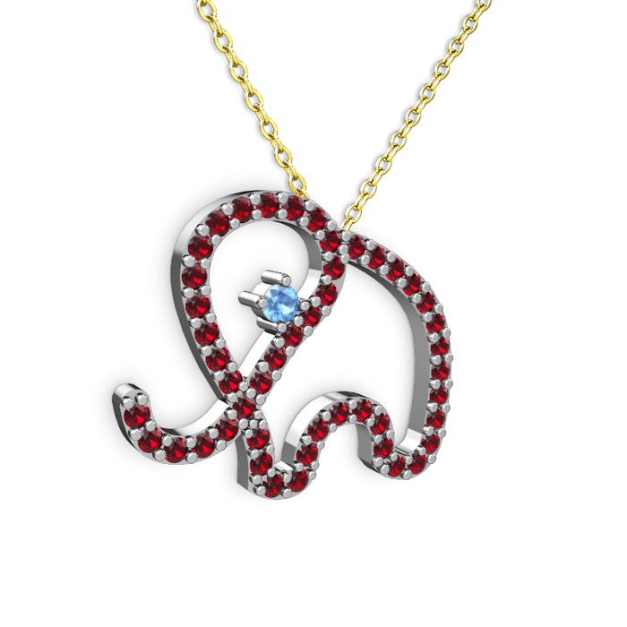 Garnet ve akuamarin 14 ayar beyaz altın kolye (40 cm altın rolo zincir)