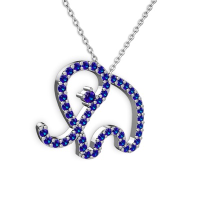 Lab safir 18 ayar beyaz altın kolye (40 cm beyaz altın rolo zincir)