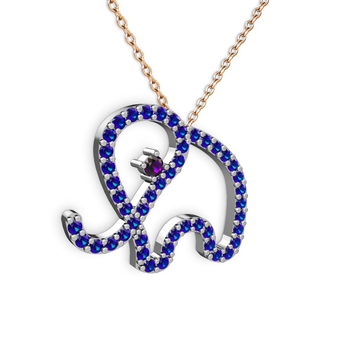 Lab safir ve ametist 8 ayar beyaz altın kolye (40 cm gümüş rolo zincir)