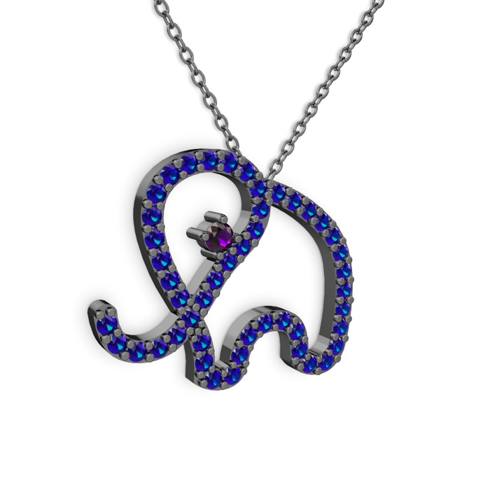 Lab safir ve ametist 925 ayar siyah rodyum kaplama gümüş kolye (40 cm gümüş rolo zincir)