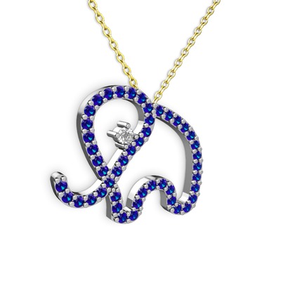 Lab safir ve beyaz zirkon 14 ayar beyaz altın kolye (40 cm altın rolo zincir)