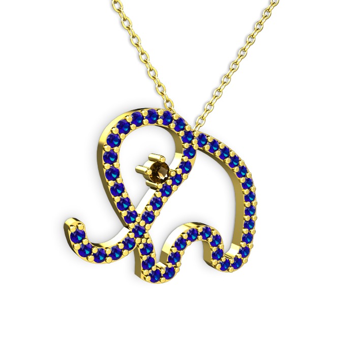 Lab safir ve dumanlı kuvars 925 ayar altın kaplama gümüş kolye (40 cm altın rolo zincir)