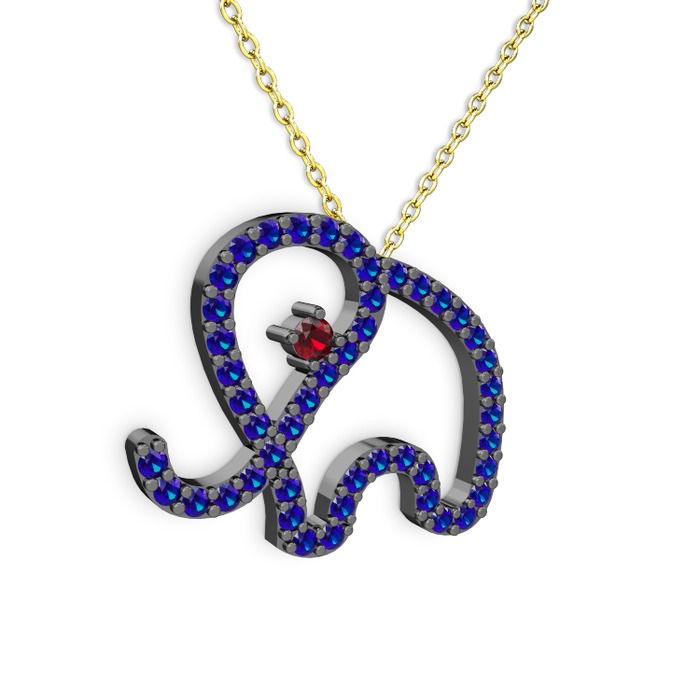 Lab safir ve garnet 925 ayar siyah rodyum kaplama gümüş kolye (40 cm altın rolo zincir)