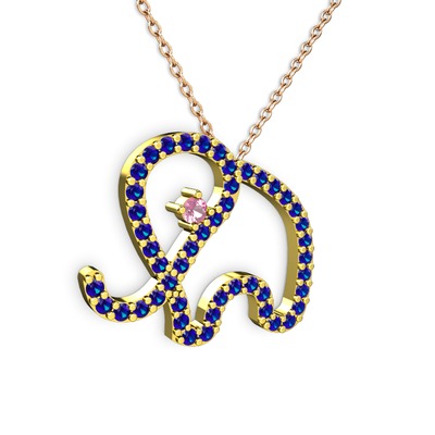 Lab safir ve pembe kuvars 14 ayar altın kolye (40 cm rose altın rolo zincir)