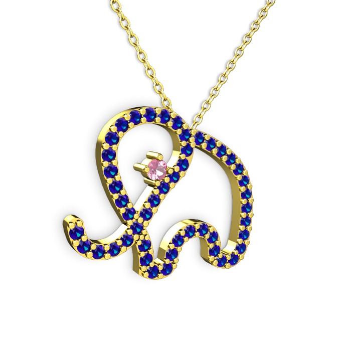 Lab safir ve pembe kuvars 925 ayar altın kaplama gümüş kolye (40 cm altın rolo zincir)
