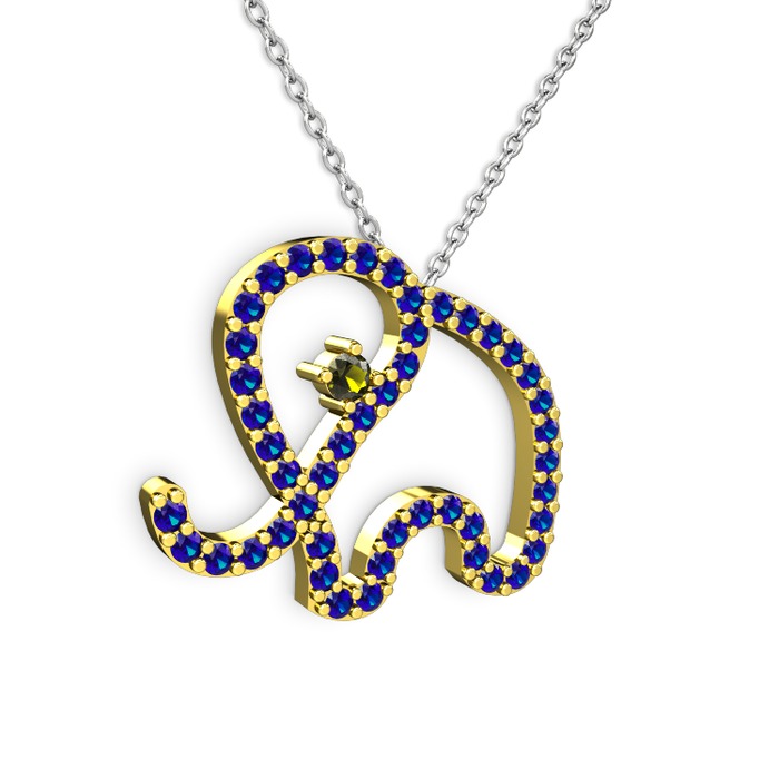 Lab safir ve peridot 925 ayar altın kaplama gümüş kolye (40 cm beyaz altın rolo zincir)