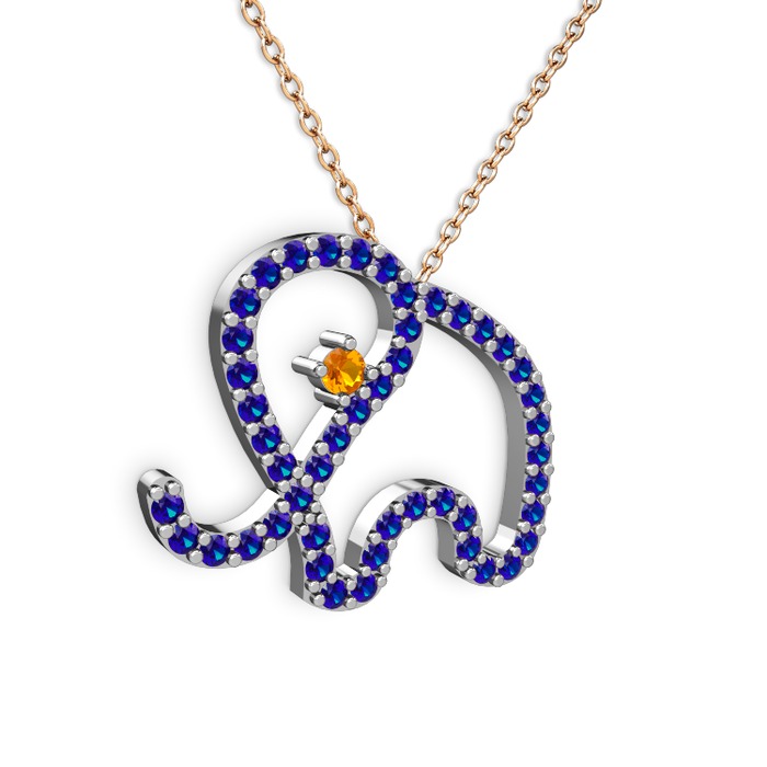 Lab safir ve sitrin 925 ayar gümüş kolye (40 cm gümüş rolo zincir)