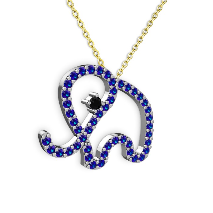 Lab safir ve siyah zirkon 18 ayar beyaz altın kolye (40 cm altın rolo zincir)