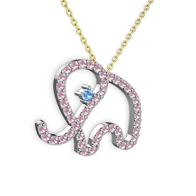Pembe kuvars ve akuamarin 8 ayar beyaz altın kolye (40 cm altın rolo zincir)