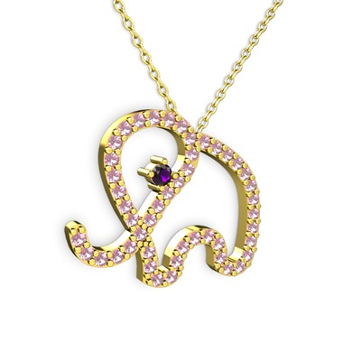 Pembe kuvars ve ametist 18 ayar altın kolye (40 cm altın rolo zincir)