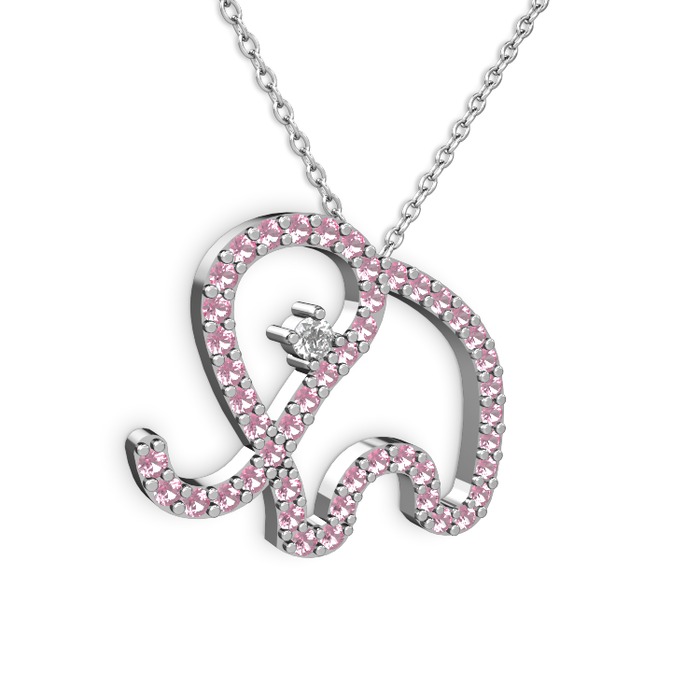 Pembe kuvars ve beyaz zirkon 8 ayar beyaz altın kolye (40 cm beyaz altın rolo zincir)