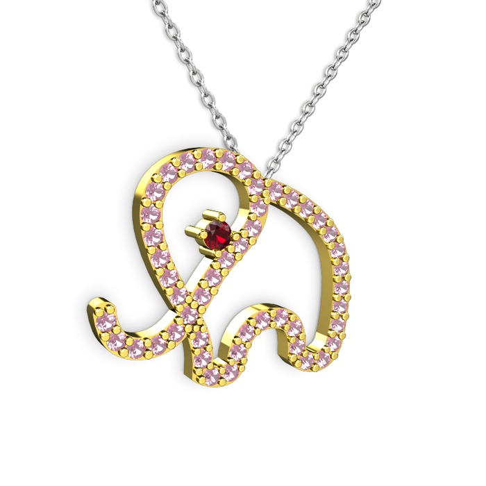Pembe kuvars ve garnet 925 ayar altın kaplama gümüş kolye (40 cm beyaz altın rolo zincir)