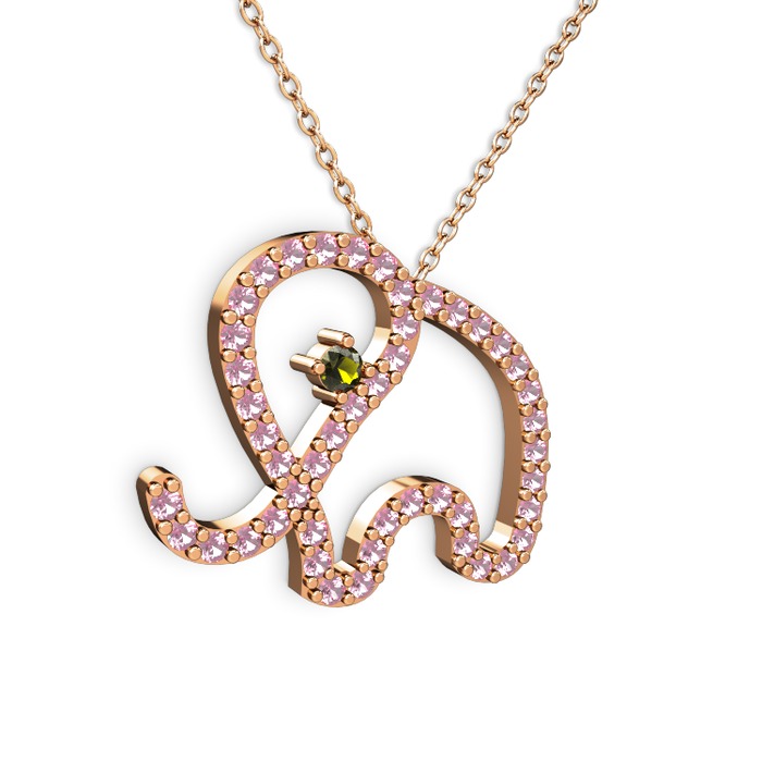 Pembe kuvars ve peridot 925 ayar rose altın kaplama gümüş kolye (40 cm rose altın rolo zincir)