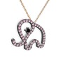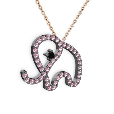 Pembe kuvars ve siyah zirkon 925 ayar siyah rodyum kaplama gümüş kolye (40 cm rose altın rolo zincir)