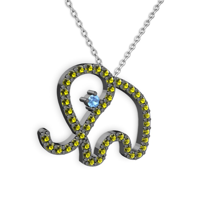 Peridot ve akuamarin 925 ayar siyah rodyum kaplama gümüş kolye (40 cm beyaz altın rolo zincir)