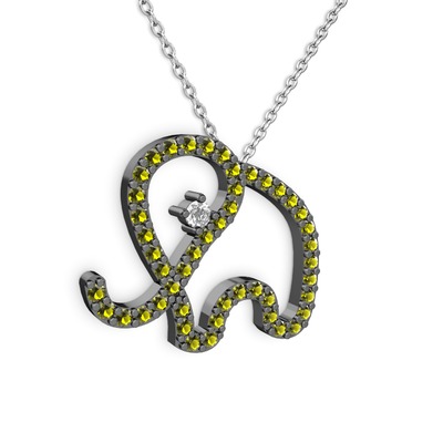 Peridot ve beyaz zirkon 925 ayar siyah rodyum kaplama gümüş kolye (40 cm beyaz altın rolo zincir)