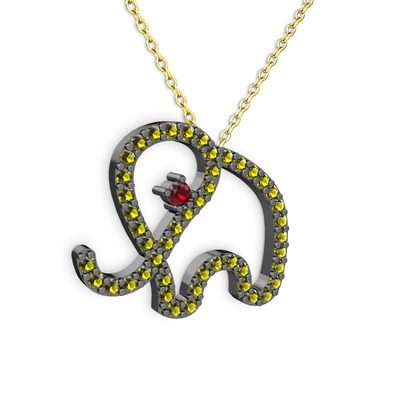 Peridot ve garnet 925 ayar siyah rodyum kaplama gümüş kolye (40 cm gümüş rolo zincir)