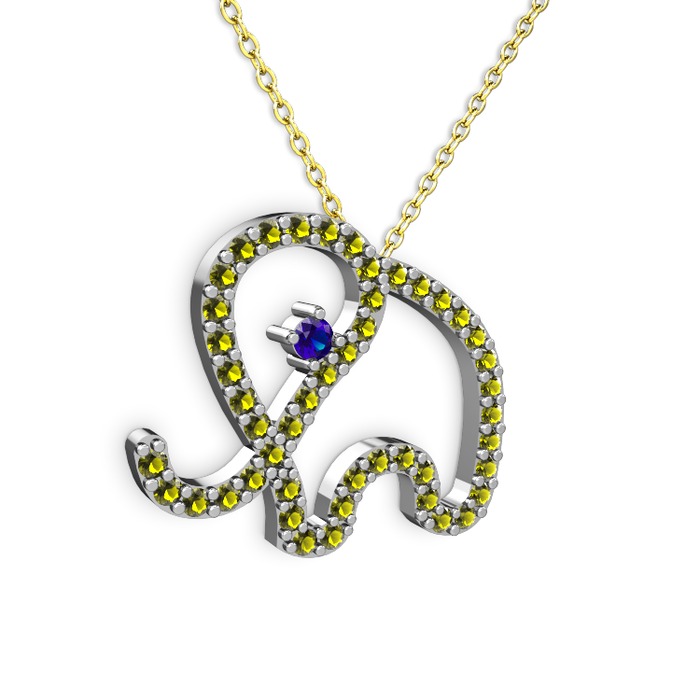 Peridot ve lab safir 18 ayar beyaz altın kolye (40 cm gümüş rolo zincir)