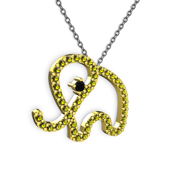 Peridot ve siyah zirkon 925 ayar altın kaplama gümüş kolye (40 cm gümüş rolo zincir)