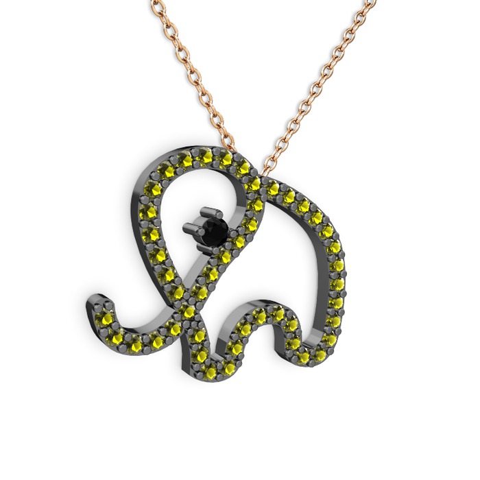 Peridot ve siyah zirkon 925 ayar siyah rodyum kaplama gümüş kolye (40 cm rose altın rolo zincir)