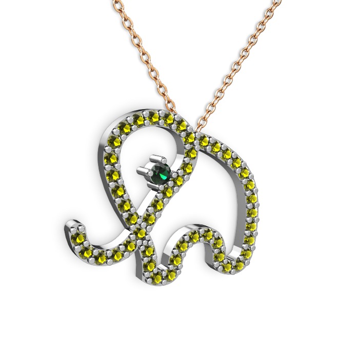 Peridot ve yeşil kuvars 18 ayar beyaz altın kolye (40 cm rose altın rolo zincir)