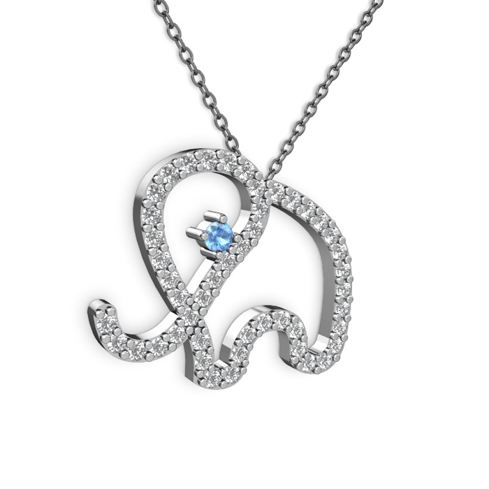Pırlanta ve akuamarin 14 ayar beyaz altın kolye (0.036 karat, 40 cm gümüş rolo zincir)
