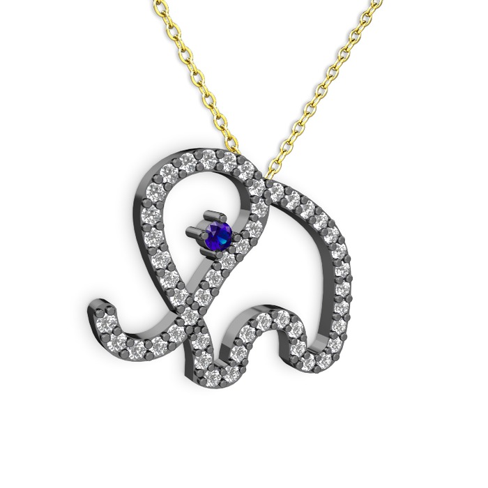 Pırlanta ve lab safir 925 ayar siyah rodyum kaplama gümüş kolye (0.036 karat, 40 cm altın rolo zincir)