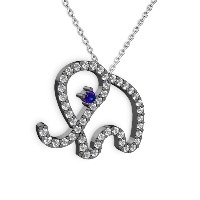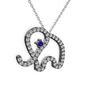 Pırlanta ve lab safir 925 ayar siyah rodyum kaplama gümüş kolye (0.036 karat, 40 cm beyaz altın rolo zincir)
