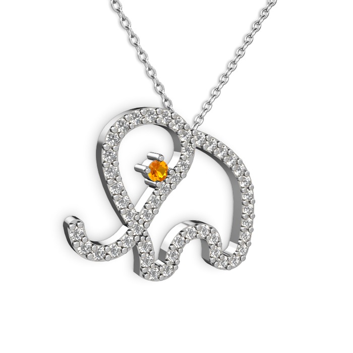 Pırlanta ve sitrin 8 ayar beyaz altın kolye (0.036 karat, 40 cm beyaz altın rolo zincir)