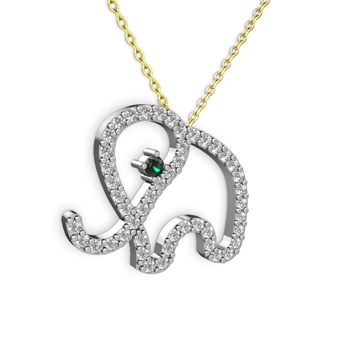 Pırlanta ve yeşil kuvars 8 ayar beyaz altın kolye (0.036 karat, 40 cm altın rolo zincir)