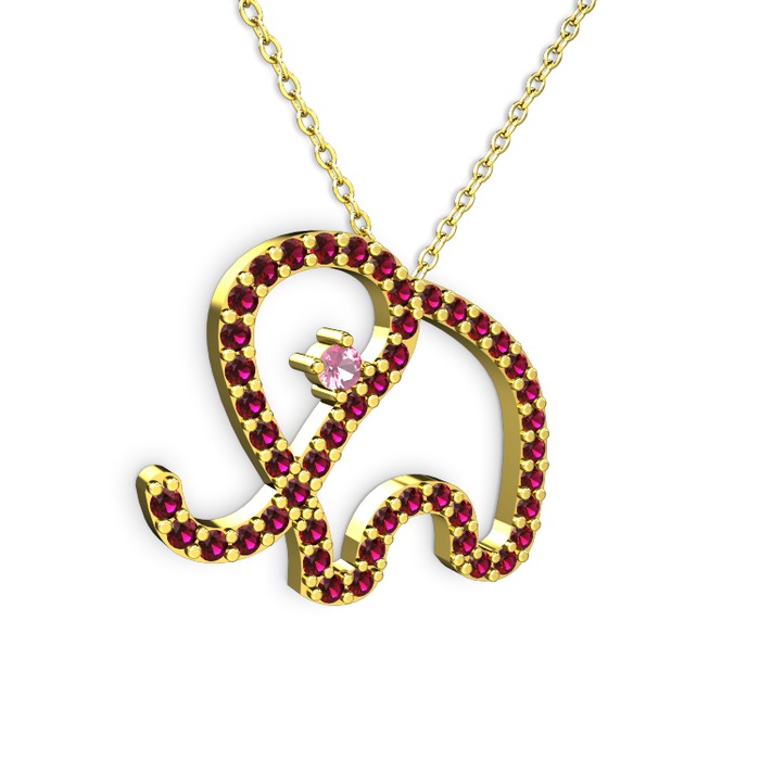 Rodolit garnet ve pembe kuvars 18 ayar altın kolye (40 cm altın rolo zincir)