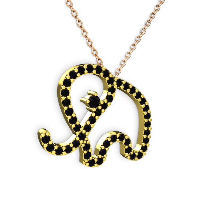 Siyah zirkon 8 ayar altın kolye (40 cm rose altın rolo zincir)