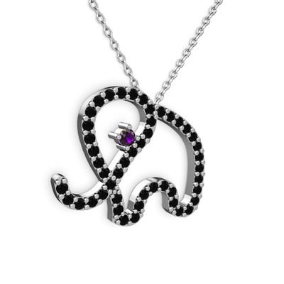 Siyah zirkon ve ametist 14 ayar beyaz altın kolye (40 cm gümüş rolo zincir)