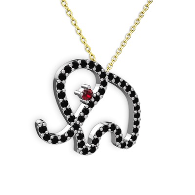 Siyah zirkon ve garnet 8 ayar beyaz altın kolye (40 cm altın rolo zincir)