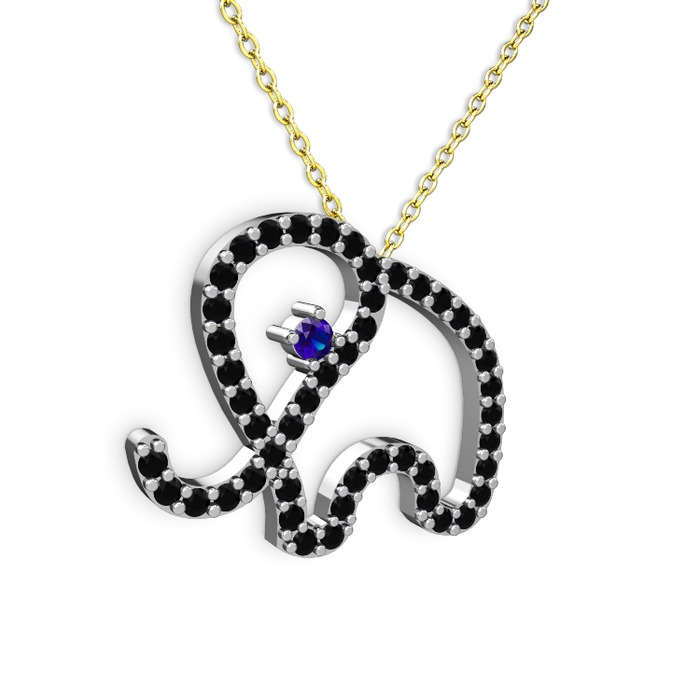 Siyah zirkon ve lab safir 18 ayar beyaz altın kolye (40 cm altın rolo zincir)