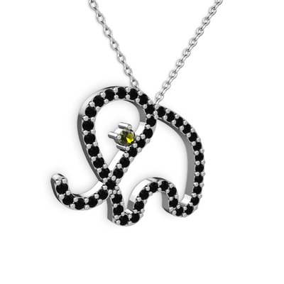 Siyah zirkon ve peridot 18 ayar beyaz altın kolye (40 cm beyaz altın rolo zincir)