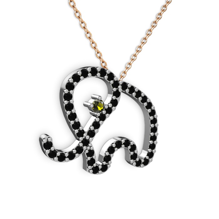 Siyah zirkon ve peridot 8 ayar beyaz altın kolye (40 cm gümüş rolo zincir)