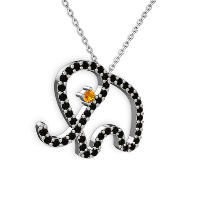 Siyah zirkon ve sitrin 925 ayar gümüş kolye (40 cm beyaz altın rolo zincir)