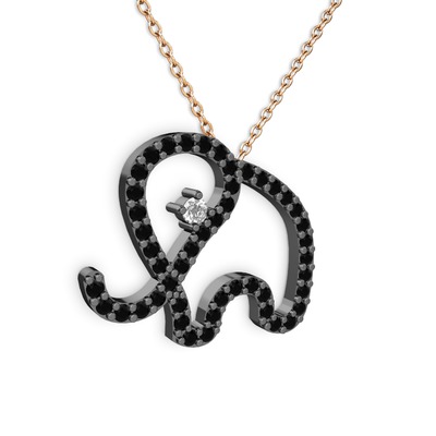 Siyah zirkon ve swarovski 925 ayar siyah rodyum kaplama gümüş kolye (40 cm rose altın rolo zincir)