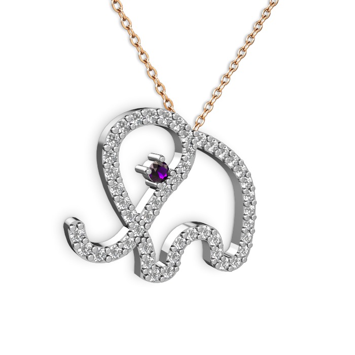 Swarovski ve ametist 925 ayar gümüş kolye (40 cm gümüş rolo zincir)