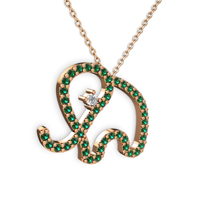 Yeşil kuvars ve pırlanta 14 ayar rose altın kolye (0.517 karat, 40 cm gümüş rolo zincir)