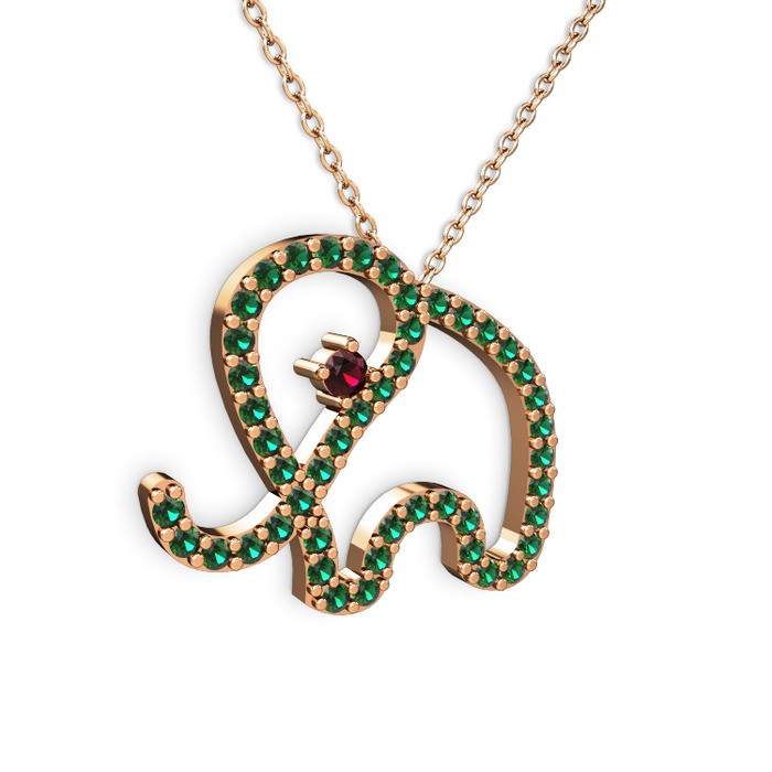 Yeşil kuvars ve rodolit garnet 8 ayar rose altın kolye (40 cm rose altın rolo zincir)