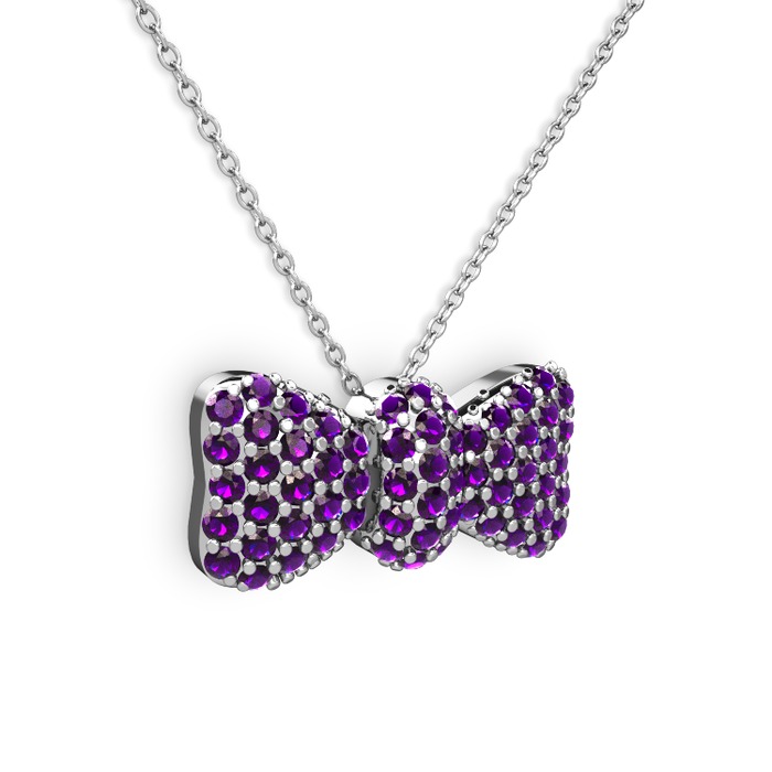Ametist 14 ayar beyaz altın kolye (40 cm beyaz altın rolo zincir)