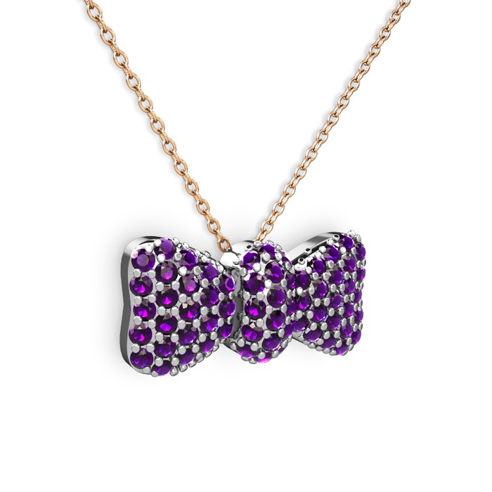 Ametist 18 ayar beyaz altın kolye (40 cm gümüş rolo zincir)