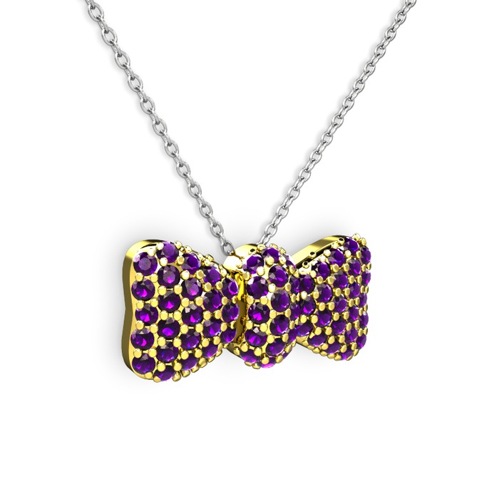 Ametist 8 ayar altın kolye (40 cm beyaz altın rolo zincir)