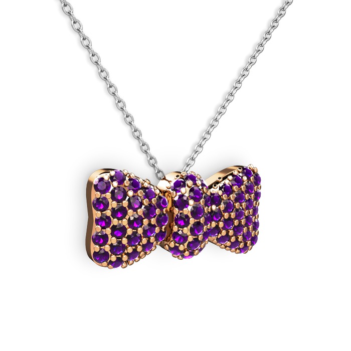 Ametist 925 ayar rose altın kaplama gümüş kolye (40 cm gümüş rolo zincir)
