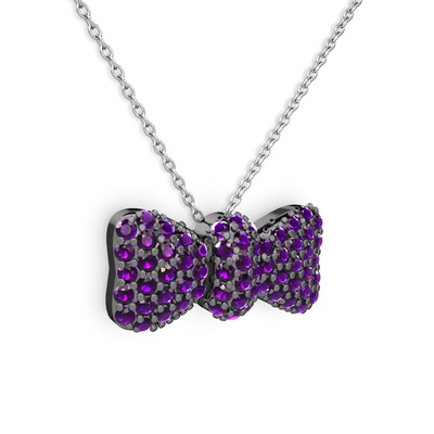 Ametist 925 ayar siyah rodyum kaplama gümüş kolye (40 cm beyaz altın rolo zincir)