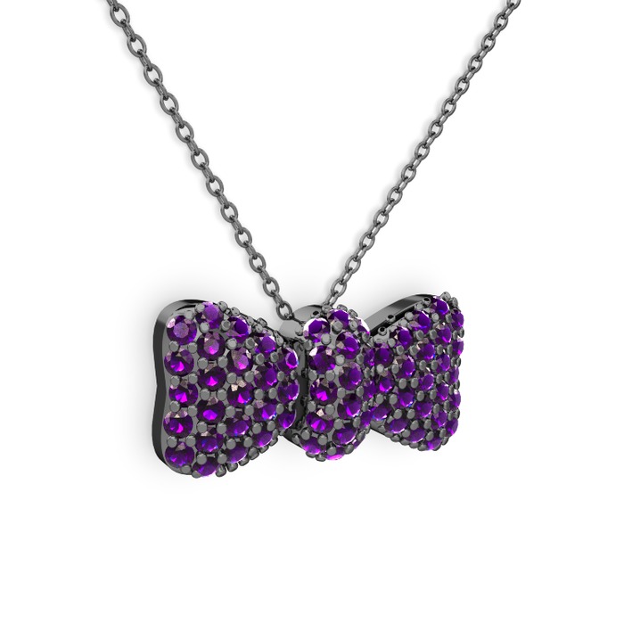 Ametist 925 ayar siyah rodyum kaplama gümüş kolye (40 cm gümüş rolo zincir)