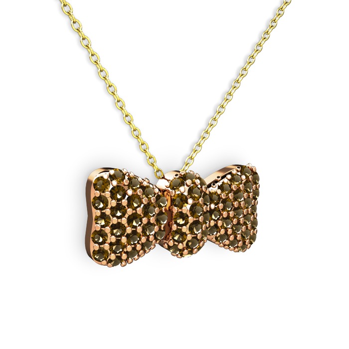 Dumanlı kuvars 14 ayar rose altın kolye (40 cm altın rolo zincir)