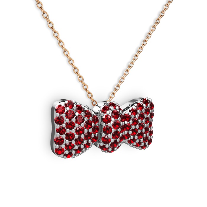 Garnet 18 ayar beyaz altın kolye (40 cm rose altın rolo zincir)